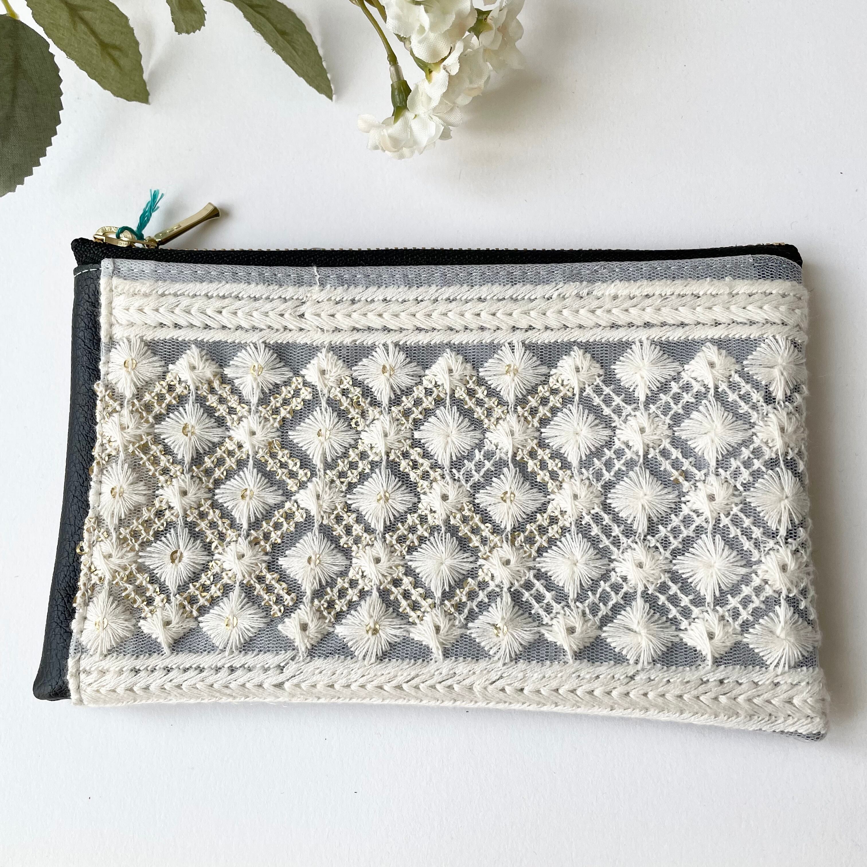 インド刺繍リボンが素敵なポーチです